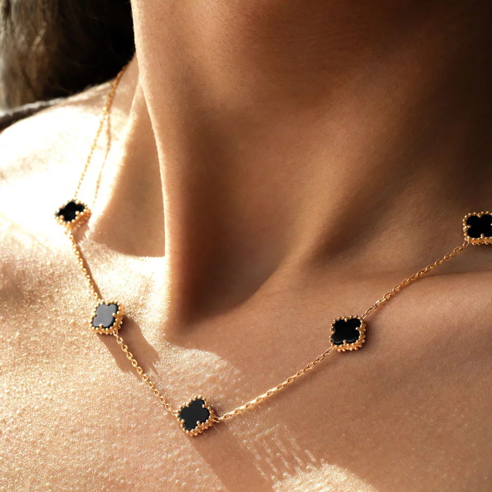 گردنبند طلا گل ونکلیف مشکی گوارسه